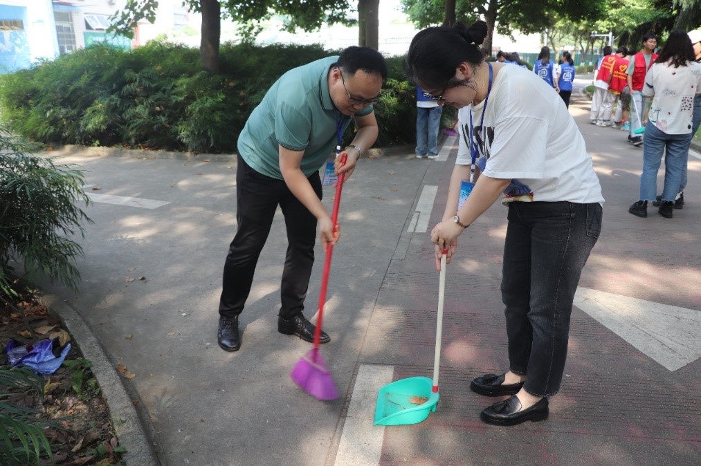 夢溪路是同學們在校園中最常來往的道路,因此道路兩側有較多的生活垃圾和枯枝落葉,志愿者們對此進行了仔細認真的清掃。任課教師也同志愿者們一起,不怕苦、不怕累、積極參與勞動,共同建設美麗整潔的校園環境,營造和諧友好的校園風氣。