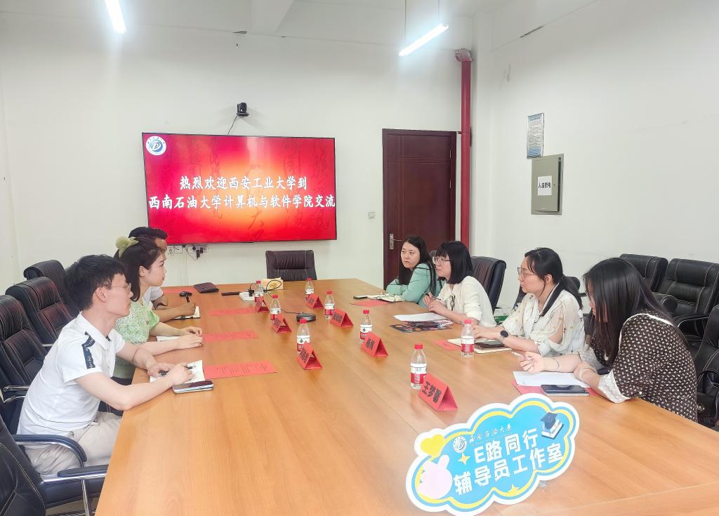 4月26日下午,西安工業(yè)大學(xué)新生院輔導(dǎo)員張曉君、機電工程學(xué)院輔導(dǎo)員楊博、經(jīng)濟管理學(xué)院輔導(dǎo)員邵欣、計算機科學(xué)與工程學(xué)院輔導(dǎo)員王夢馨一行到校交流學(xué)習(xí)“E路同行”輔導(dǎo)員工作室建設(shè)經(jīng)驗。“E路同行”輔導(dǎo)員工作室主持人伍曉蕓、工作室成員蔣欣岑、劉柏君與來訪的老師就工作室建設(shè)經(jīng)驗和大學(xué)生教育管理與服務(wù)的特色做法進行了座談交流。