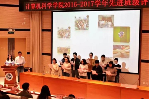 11月1日下午,由計科院學生會主辦的計科院2016-2017年度先進班級評比展示活動在思學樓A114舉行。學院黨委書記朱松柏、副書記余輝、副院長王楊以及全體輔導員擔任此次活動評委,學生會主席團成員、17級全體班委、16級部分班委入席觀看。