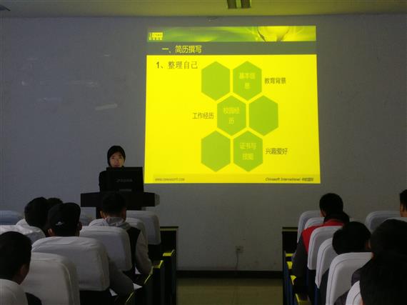 11月10日下午,計(jì)科院在明理樓B306開展了求職面試講座,旨在讓即將步入社會(huì)的大三學(xué)生順利找到適合自己的工作。來(lái)自中軟國(guó)際的夏春梅老師作為本次講座的主講人出席了本次講座,她分別從簡(jiǎn)歷撰寫、單人面試、群體面試三方面做了詳細(xì)闡述。
