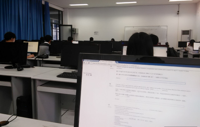 6月19日早上9點,13、14級網絡工程的一部分同學在明理樓B409舉行了思科CCNA、CCENT的校內選拔賽。參賽同學提前20分鐘來到機房門口耐心的等待著考試的開始。思科競賽是網絡工程專業的強有力認證考試,只有過五關斬六將才能成功入圍,所以大家都懷著忐忑的心,這將是對大學這段時間學習的有力證明。9點如期到來,大家刷卡進入機房,選擇好座位登錄進cisco的服務器,考試為時1個半小時的上機考試,考試分為理論知識測試和路由配置考試。考試期間大家認真凝眸,仔細分析,打起了12分的注意力。有對答如流的,有時而抓耳撓腮的。1個半小時很快結束。有喜上眉梢的,也有眉頭緊鎖的,幾家歡喜幾家愁。這樣的結果是對以往學習的充分檢測,比賽就是將平時書本上的理論知識化為自己的認知,將之聯系實際運用出來。有的同學非常擅長書本上的知識,但一讓動手操作就覺得無從下手。這就是在平時的學習中眼高手低不注重動手操作,沒有將知識落到實處。對于參加本次比賽的我來說,從中受益匪淺,作為一名即將進入大三學習的學生,沒有比制定目標更重要的,在這次競賽中讓我認識到了自己的薄弱點,好好利用將到來的假期,查漏補缺,將所欠下的知識補起來,為邁入大三打下一個良好的起點。