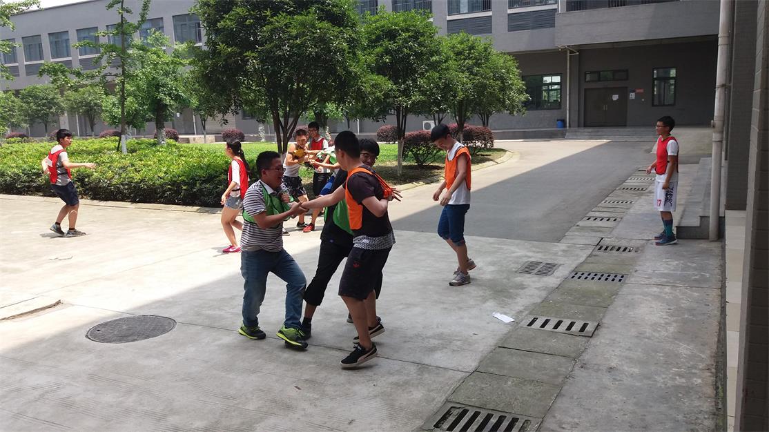 6月9日上午8點,早上的太陽依舊早早升起,夏日炎炎也阻擋不了同學們的腳步,同學們早已聚集在二期足球場,男生們細心的為女生準備了早飯,班委們也提前將場地和道具布置好,活動正式開始?;顒拥牡谝粋€環節是通過游戲“找錢”來決定本次四個隊伍的隊長,最后獲勝的四人將分別作為紅、黃、橙、綠隊的隊長,并按照次序選擇本隊的隊員。分好組后,進行第二環節:合力吹氣球,通過游戲獲勝的隊伍將得到一條潛伏在本隊的臥底線索,同學們躍躍欲試,為游戲做好充分的準備,爭先恐后的想要為隊伍獲得勝利來猜出本隊的臥底,同學們對臥底的身份充滿疑問,各執己見。在活動結束后,扮演臥底的冉馳昊同學說:“開始我得知自己是臥底之后,有點恐慌不知所措,但是調整好知道自己的任務之后就十分興奮又緊張,極力想要去表現,但同時不能暴露自己身份,這樣的體驗真的太棒了!”第三環節,同學們出發前往三期尋找“果凍”,果凍將在最終的“撕名牌”作為道具使用,在找果凍的過程中同學們妙計百出,想方設法的收集果凍,盡管頭上的太陽依舊不饒人,同學們也熱情高漲,一路有說有笑,出謀劃策,相互合作,而有的同學卻把找到的果凍吃掉了,也讓人哭笑不得!同學們將果凍收集完后,本次活動進入了高潮——撕名牌大戰。撕名牌環節中,每個隊有10分鐘的進攻時間,在進攻時間內其他隊伍只能防守,而各隊也使用了各自的技能,出謀劃策,用盡一切方法保護自己的名牌,同學們追逐打鬧,嬉笑言歡,在撕名牌的同時也增進友誼,秉承友誼第一,比賽第二的原則,遵守游戲規則,就算體力不支也堅持保護自己的隊員,被out的謝宇翔同學說:“當時就在專心的看別人的情況,沒有注意到自己的背后,然后突然就被撕掉了,盡管不甘心,但還是十分享受整個游戲的?!?