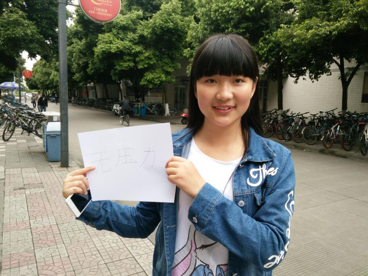 我們攔住了一位長得萌萌噠的軟妹子,趕緊上前去采訪,妹子一直開開心心的笑著,小編是個(gè)女孩子,也不禁被妹子的笑容溫暖了呢,提及壓力,妹子開心的回答到,無!壓!力!真是樂觀開朗的笑容治愈系萌妹子呢~