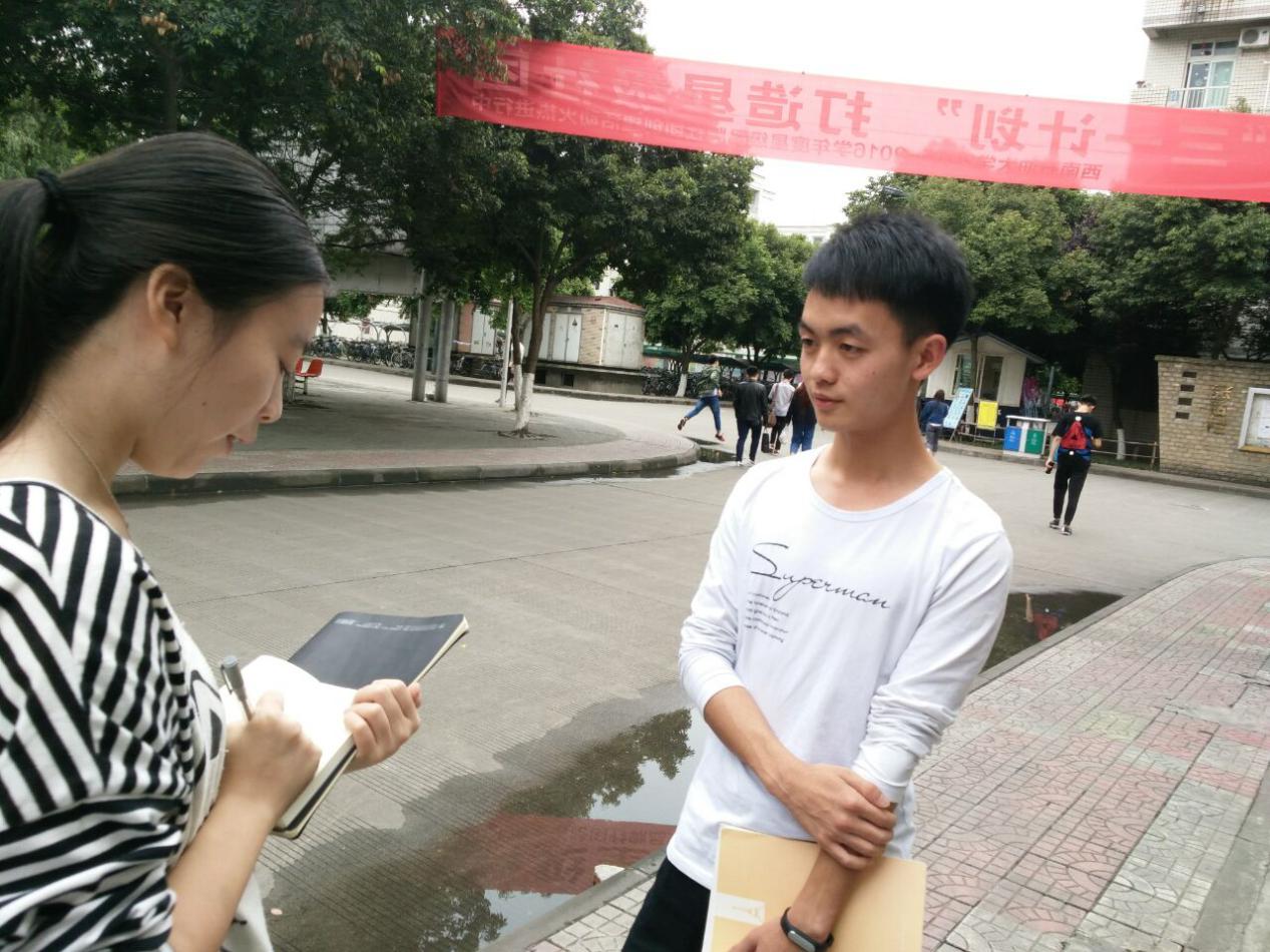 他告訴小編他們寢室關(guān)系非常好,稱兄道弟,一起打游戲,聚餐,KTV,看來和室友相處的壓力應(yīng)該是沒有的。繼續(xù)詢問下去,才發(fā)現(xiàn)原來是學(xué)習(xí)上的壓力,平常小壓力,期末大壓力,看來這位鮮肉一定是個(gè)熱愛學(xué)習(xí)的祖國好花朵。說到這,小編不禁好奇祖國好花朵對(duì)未來的打算,他說到目前沒有創(chuàng)業(yè)的打算,但是不擔(dān)心就業(yè),因?yàn)閷?duì)自己的專業(yè)充滿了自信!看來專業(yè)選的對(duì),就業(yè)不用愁。