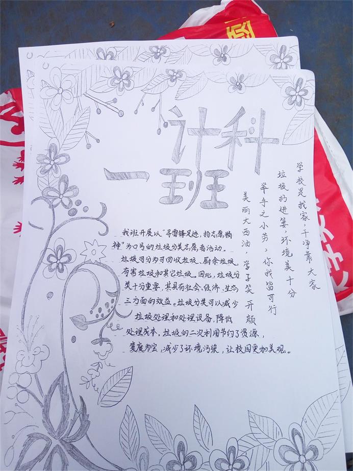 經過明確的分工后,同學們在班長團支書的帶領下開始了今天的志愿活動。我班同學向路上過往的同學發放倡議書,并向他們解釋說明我們活動的目的和垃圾分類的重要性。還有的同學到一些保潔阿姨平時打掃不到的地方撿垃圾。我們的活動得到了教職工家屬區的老師還有保安人員的贊賞和肯定。活動的最后,我們全班進行了合照來紀念這次活動。