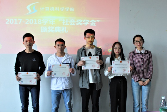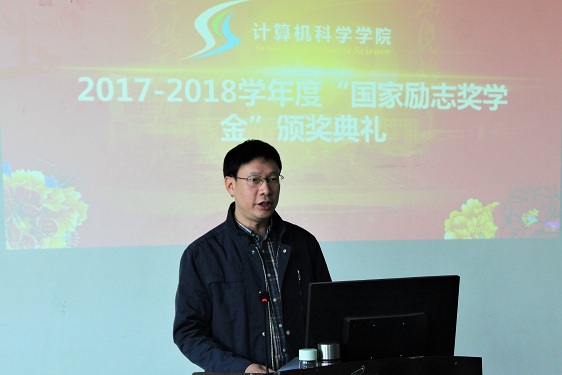 頒獎典禮上,朱松柏宣讀了《關于表彰計算機科學學院2017-2018學年“國家勵志獎學金”“社會類獎學金”獲得者的決定》,他特別指出了此次頒獎典禮的意義,他說到:“學院隆重舉辦勵志獎學金、社會類獎學金頒獎典禮,是給獲獎同學的肯定,更希望獲獎同學能夠再接再厲,謙虛謹慎,戒驕戒躁,爭取更大的進步;并號召全院同學以獲獎同學為榜樣,樹立正確的目標,自立自強,刻苦學習、認真專研、全面發展、努力提高自身綜合素質,為把自己培養成為合格的社會主義建設者和接班人而努力奮斗。”
