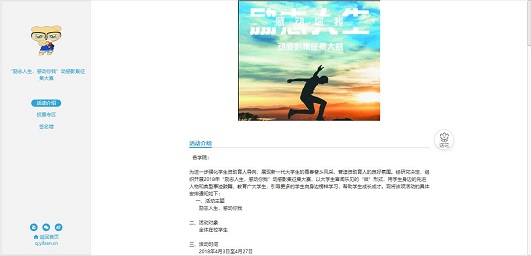 為進一步強化學生資助育人導向,展現新一代大學生的青春奮斗風采,營造資助育人的良好氛圍,學校2018“勵志人生,感動你我”動感影集征集大賽于2018年4月3日正式啟動。歷時近1個月,經過學院推薦、易班網絡投票、專家評審等環節,最終評選出一等獎1名、二等獎3名、三等獎5名、優秀獎10名。