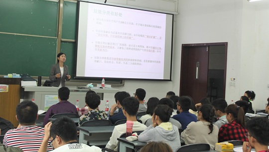 首先,謝女士從為什么要垃圾分類四個角度強調了垃圾分類的重要性和必要性,并重點介紹了可回收物、有害垃圾、其他垃圾的分類方法、投放方法及注意事項;其次,謝女士通過對比國內外的垃圾處理機制和處理效率,向同學們說明通過加強垃圾分類,可以有效的提高資源的利用效率,并且實現垃圾減量化的目標。同時也強調了政府在保護環境方面建立體制機制的重要性,這也讓同學們認識到在處理垃圾問題上,服從政府指導的必要性;最后,謝女士還以PPT的形式讓同學們進行互動答題,真正讓同學理解并掌握垃圾分類知識和投放技巧。