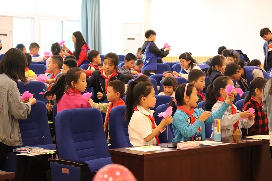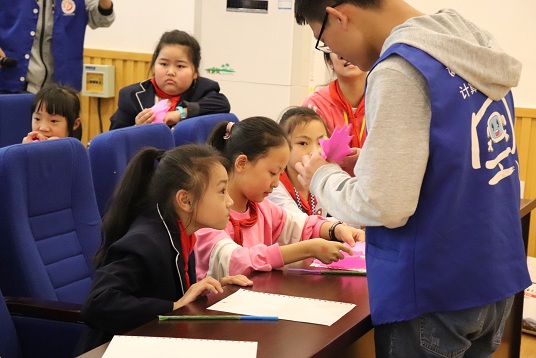 圖1:志愿者教小學(xué)生學(xué)折紙