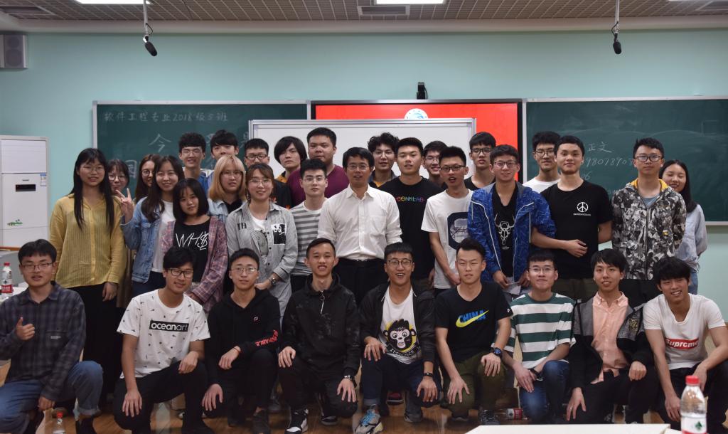 晚上19時20分,趙正文走進班會軟工專業2018級5班的班會教室,同學們全體自發起立,熱烈鼓掌歡迎,趙正文也向大家揮手致意,頻頻問好。班級主題班會由班長王儷穎主持。在嘉賓介紹環節,趙正文老師自報家門,強調是自己曾在計科院工作,跟大家“本是同根生”,既是大家的專業課老師,更是大家的大師兄,他希望自己能成為軟工1805班的一份子,趙老師詼諧幽默的一席話瞬間引得現場歡聲笑語不斷,瞬間拉近了師生間心的距離。