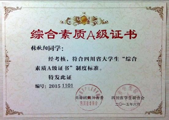 四川省大學生綜合素質“A級證書”制度自1998年試點實施以來,得到了全省各高校的積極響應。多年來,四川省大學生綜合素質“A級證書”的評選對于培養具有學習能力、實踐能力、創新能力的新型人才,促進大學生綜合素質全面提高起到了積極的推動作用,得到了社會的廣泛認可,也是四川省對大學生綜合素質唯一的官方認證模式。