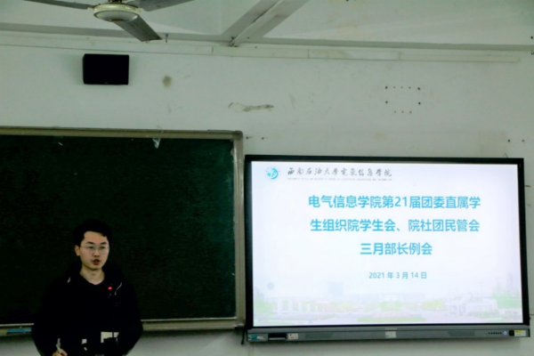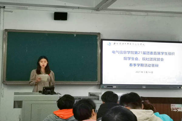 為提高本學期電氣信息學院學生會各部門活動的質量,為同學們帶來更精彩、更有意義的活動,2021年3月14日,我院青年發展部開展了電氣信息學院第21屆團委直屬學生組織、院學生會、院社團民管會春季學期活動答辯,為新學期我院學生會各部門活動的順利開展做準備。