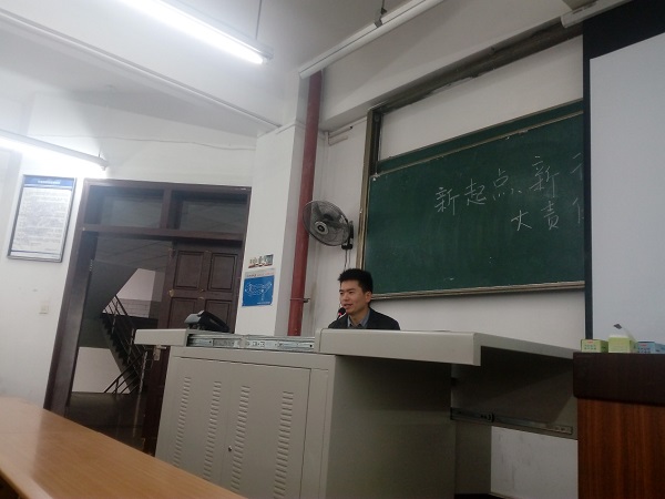 會上,李老師還向大家講述了他在寒假中的家訪經歷,他說:“在我們專業中,有一位同學,他從小與奶奶一起生活,家中無經濟來源,只能靠社會的幫助,上了大學后,更是只能靠自己兼職來掙取大部分生活費,可他依舊樂觀積極并且在努力學習,絲毫不懼困難”。他強調說“我們大部分同學的生活都是有基礎保障的,可為什么我們不能更加努力的為生活而奮斗呢?”