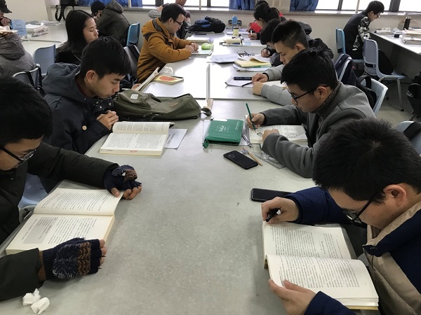 在寒風刺骨的清晨,17級自動化一支部的同學們按照分組結伴來到圖書館開始學習,為了不打擾到圖書館其他同學的學習,活動開始時一支部的同學們都自行查閱書籍,書架前全是他們認真讀書的身影;隨后大家都自覺地整理好搜集到的素材資料,以便學習成果展示時向大家分享。
