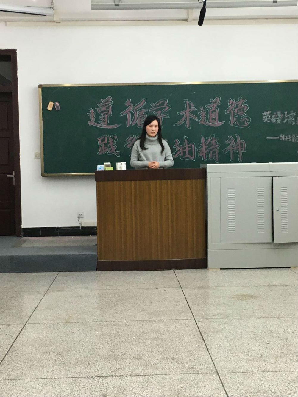 為進(jìn)一步引導(dǎo)廣大研究生遵循學(xué)術(shù)道德、樹(shù)立誠(chéng)信學(xué)風(fēng)、完善學(xué)術(shù)人格,踐行石油精神,11月10日晚7點(diǎn),在思學(xué)樓B402舉行了校級(jí)“遵循學(xué)術(shù)道德踐行石油精神”英語(yǔ)演講比賽復(fù)賽。各學(xué)院經(jīng)過(guò)初賽共推薦21名選手參加復(fù)賽,經(jīng)評(píng)委現(xiàn)場(chǎng)評(píng)分最終選出12人進(jìn)入決賽。此次復(fù)賽共四位評(píng)委,由外國(guó)語(yǔ)學(xué)院蘭昌琴老師、徐繼菊老師擔(dān)任評(píng)委。 參賽選手于六點(diǎn)半完成了現(xiàn)場(chǎng)抽簽,正式比賽于七點(diǎn)準(zhǔn)時(shí)開(kāi)始。在將近兩個(gè)多小時(shí)的比賽中,來(lái)自不同院系的選手都展示了自己高超的語(yǔ)言表達(dá)功底和各具特色的演講風(fēng)格。一段段精彩的陳述都在觀眾中引起了共鳴,獲得了陣陣掌聲 .