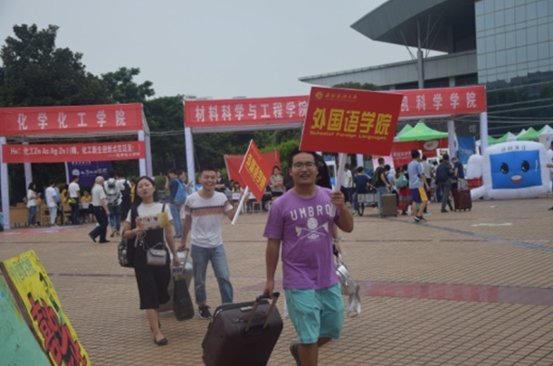 為了迎接新同學的到來,外國語學院學生會的同學們在暑期就進行了精心的籌備,7日下午,迎新點工作正式啟動。