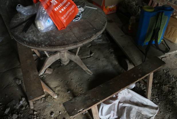 隨后,全體隊員來到了另一戶家庭,村支書向我們介紹到:“這戶人家是應該是全村最為貧困的一家,可以說是家徒四壁,老婆外出打工三年毫無音訊,應該是拋棄他們了,家里還有兩個讀小學的孩子,除了務農有一點收入,再沒有其他經濟來源。”他們的水泥樓房已經建好,就筆者從外觀上看去,這戶家庭絕對不算是村里最貧困的一戶,但走進去一觀,說家徒四壁絕不為過,整棟房子里沒有什么家具,連地都還是泥地。據村支書介紹到,他們家的門都是村里墊錢給安上的。在之后與其交談的過程中,他向我們介紹了他兩個兒子,他們都是剛剛才從地里回來,窮人的孩子早當家,哥哥和弟弟都特別懂事又好學,同行的扶貧干部告訴兩兄弟,窮只是一時的,教育才是他們家的出路。