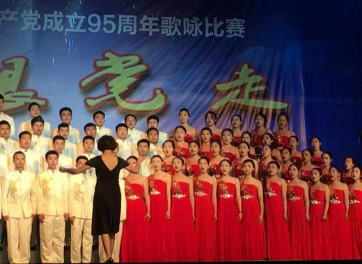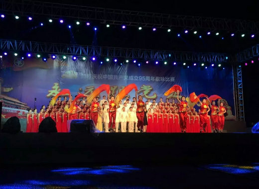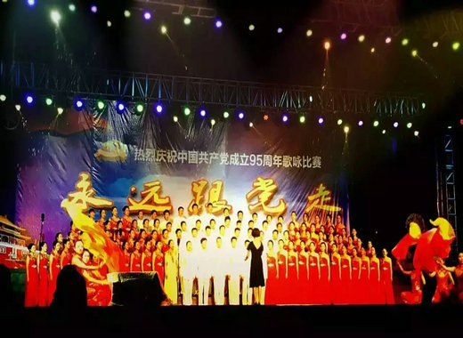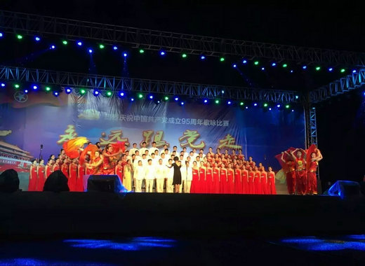 2016年5月8日星期日晚7:30,期待已久的慶祝中國(guó)共產(chǎn)黨成立95周年歌詠比賽——“永遠(yuǎn)跟黨走”于一期足球場(chǎng)正式唱響。