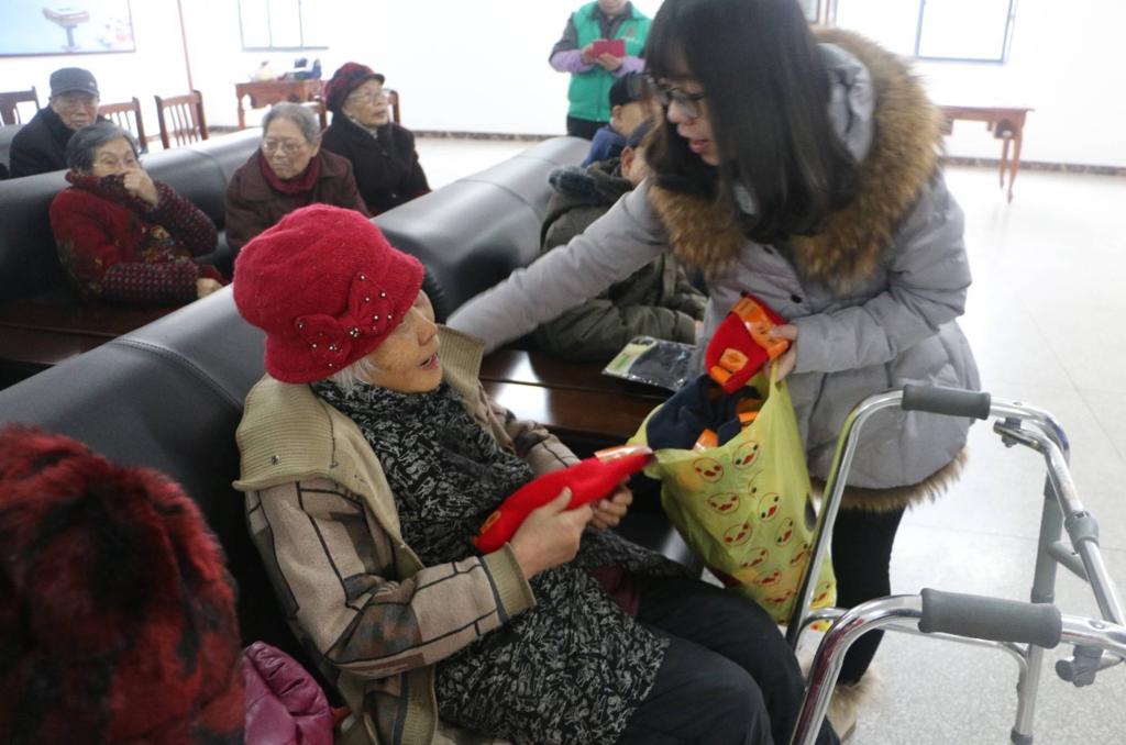 最后我們送上了小禮物,提前準(zhǔn)備好的的過(guò)冬的厚襪子。希望爺爺奶奶能過(guò)一個(gè)溫暖的冬天。