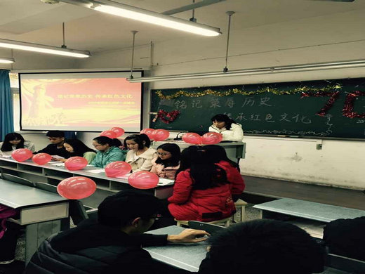 2015年11月26日星期四,外語院2014、2015級全體學生參加了由外語院外聯實踐部主導的“紅色精神傳承活動”?!斑@是紅色血淚的榮辱歷史,是被鮮血染紅的精神文化?!敝鞒秩艘环挥屑で榈年愒~之下,原本放松的同學們不禁整理衣冠,立直了身子。時值冬日,這令人振奮的紅色主題卻沸騰了在場每一個人的血液。