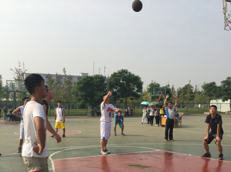 10月11日上午,外語院13級男生與15級男生在學校二期籃球場進行了一場令人熱血沸騰的籃球賽。九點半,同學們陸續抵達籃球場,球員們在賽場上進行積極的熱身活動。十點,隨著裁判的一聲口哨,比賽正式開始。