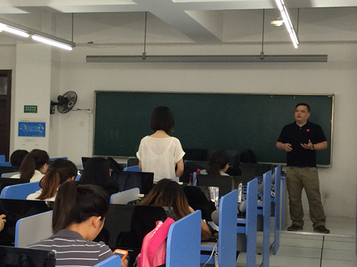 宣講首先對國內翻譯現狀做了簡單的描述,負責人馬總引用豐富的數據,客觀地分析了翻譯行業的發展機會以及今后社會需要的翻譯人才類型。針對同學們今后就業的困惑,馬總強調:要培養翻譯能力,找準自身位置、做好職業生涯規劃。