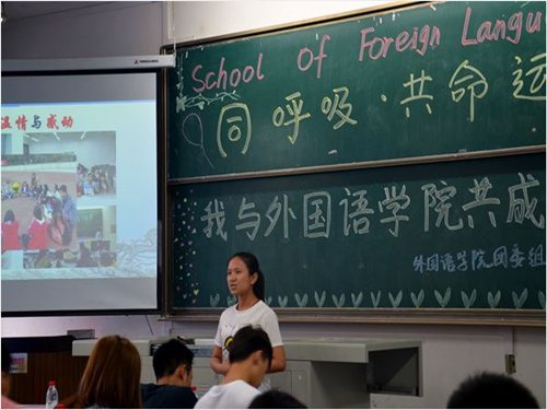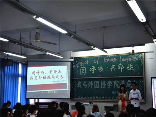 本次團會創新地通過一場演講賽為大家講述了外語院一路走來的故事及同學們在外語院的經歷和感受。鏗鏘有力的言辭,堅毅沉著的面容,精彩的演講激發著著學生熱情、喚醒了青春活力。團會最后,歌曲《和你一樣》更是將同學們的心團結在一起,真正做到了同呼吸,共命運。