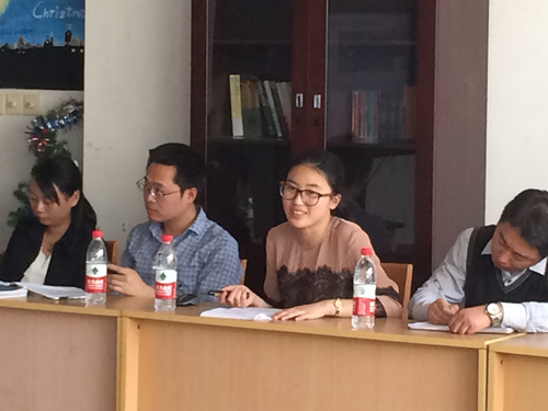 活動中,各報告人針對活動主題展開了討論,分別發表了自己的觀點與看法。第一組報告人周游以“如何利用微信、微博搭建思政教育新平臺”為題展開討論;第二組報告人劉翔以“利用新媒體創新開展網絡思想政治教育工作初探”為題展開討論;第三組報告人夏蕾以“淺談QQ空間輔助輔導員思想政治教育工作的優越性”為題展開討論;第四組報告人竇雪鋒以“新媒體新思路新常態”為題展開討論。