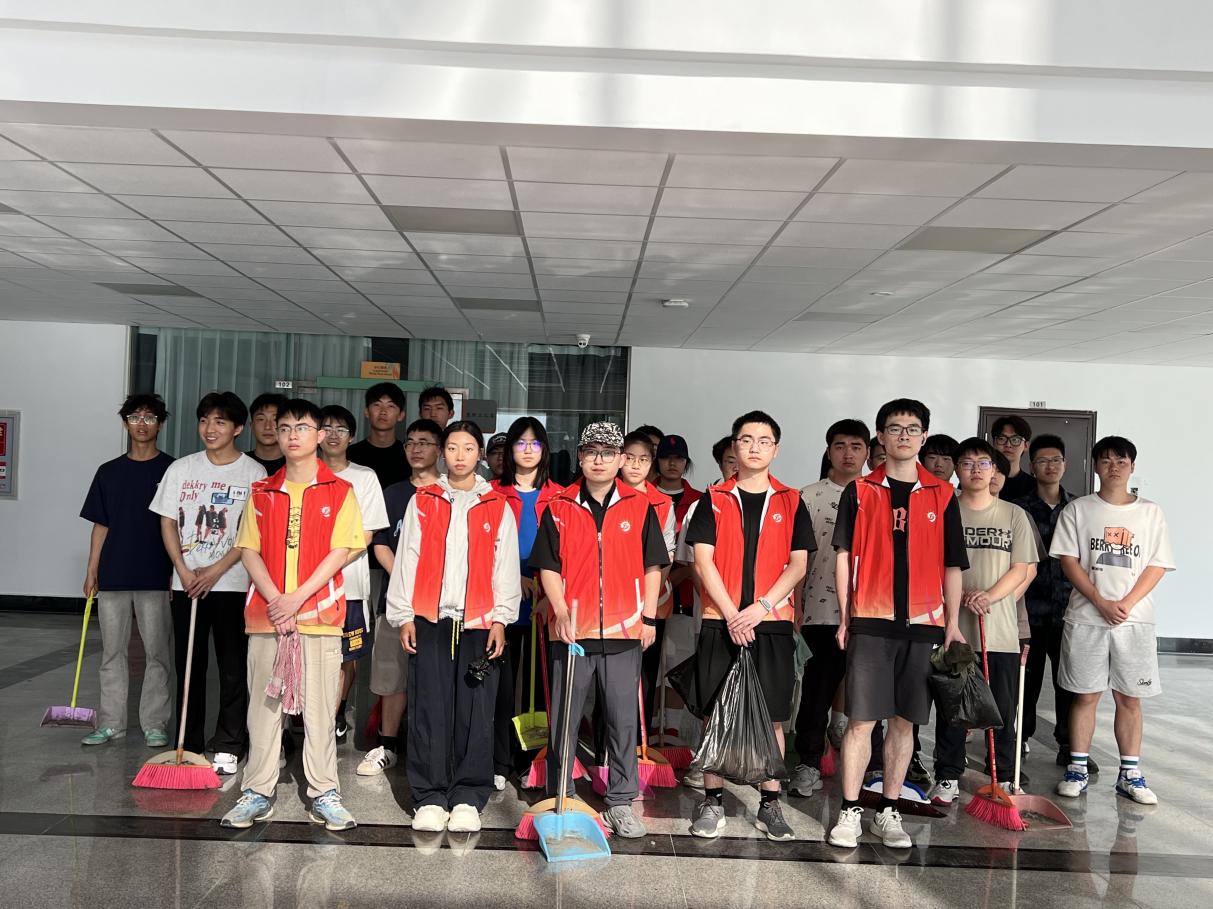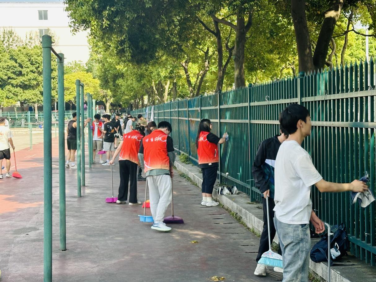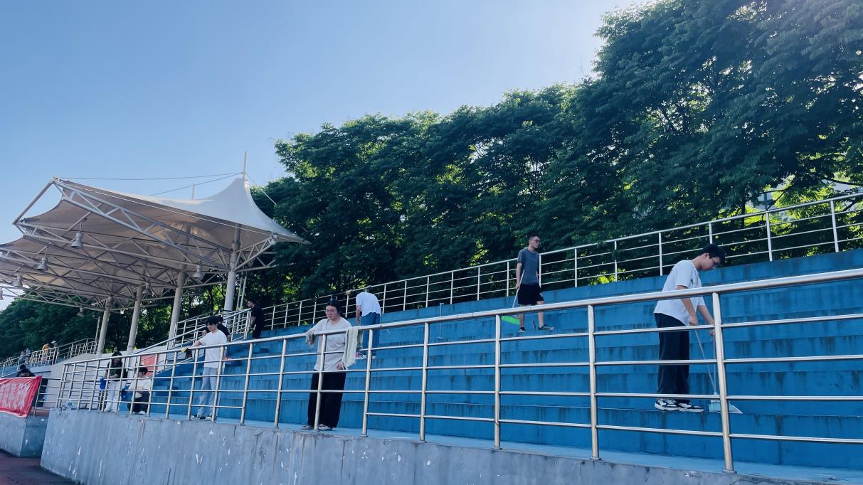 活動依托體育學院“體+勞”融合共育勞動實踐基地和“運動先鋒”黨員志愿服務站開展,輔導員汪佳材帶隊。學生分為5個大組,前往體育館、兩個田徑場、夢溪步道、籃球場、排球場等場地,開展衛生清潔和設施檢查。雖然天氣炎熱,但同學們狀態良好,清掃路面雜物、擦洗器材浮塵,清潔煥新;安全巡檢,敲擊測試、實地體驗,排查安全隱患。