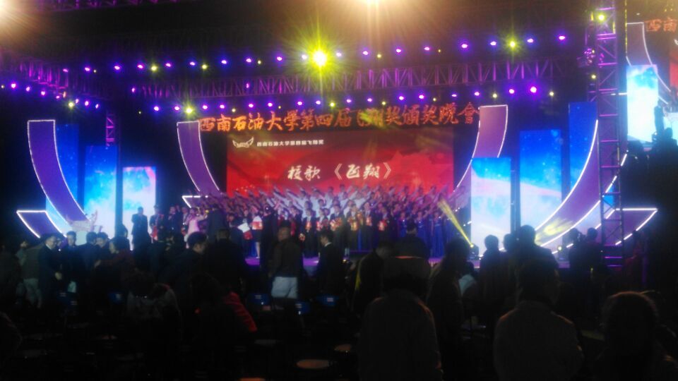 2015年10月31號(hào)西南石油大學(xué)第四屆“飛翔獎(jiǎng)”在二期足球場(chǎng)隆重舉行。校長趙金洲、校黨委書記孫一平等學(xué)校領(lǐng)導(dǎo)出席了本次晚會(huì)。中國工程院院士羅平亞及我校海內(nèi)外杰出校友受邀擔(dān)任嘉賓。