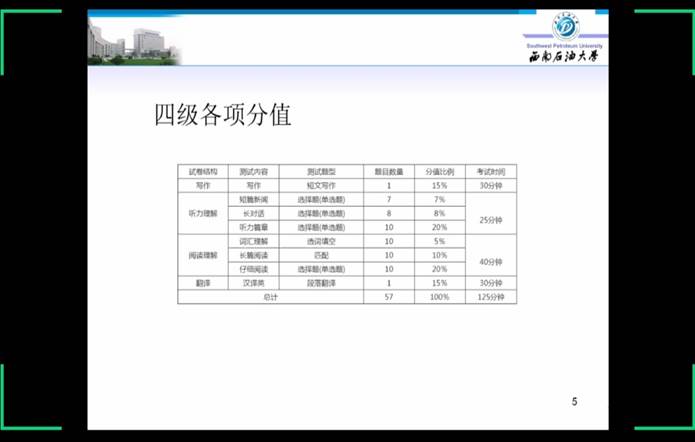 隨后,蒲晨晨老師就個人英語學(xué)習(xí)與考試過程中的心得體會向各位同學(xué)進(jìn)行了分享,她以往年四六級考卷為范例就分值、題型進(jìn)行了說明,以真題為例分析聽力、閱讀、翻譯、寫作的解題技巧,并提醒同學(xué)們注意“正面調(diào)整心態(tài)”、“合理安排時間”。她還特別強調(diào)本次考試為“多題多卷”模式,考生不得提前翻閱試題卷。