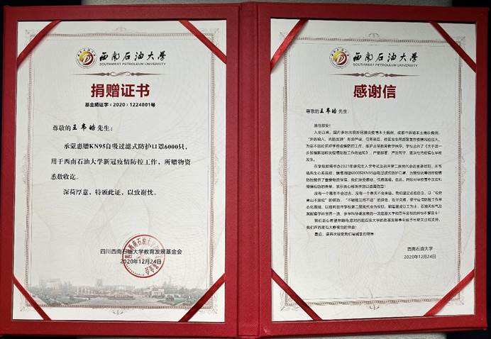 張繼紅對王韋皓老師的捐贈行為給予了高度贊賞并表示衷心感謝。在當前學校上下齊心、協力抗疫的情況下,王韋皓老師個人出資購買6000只KN95防護口罩捐贈給學校疫情防控辦,體現出西南石油大學一位普通老師的責任擔當與愛校暖意。