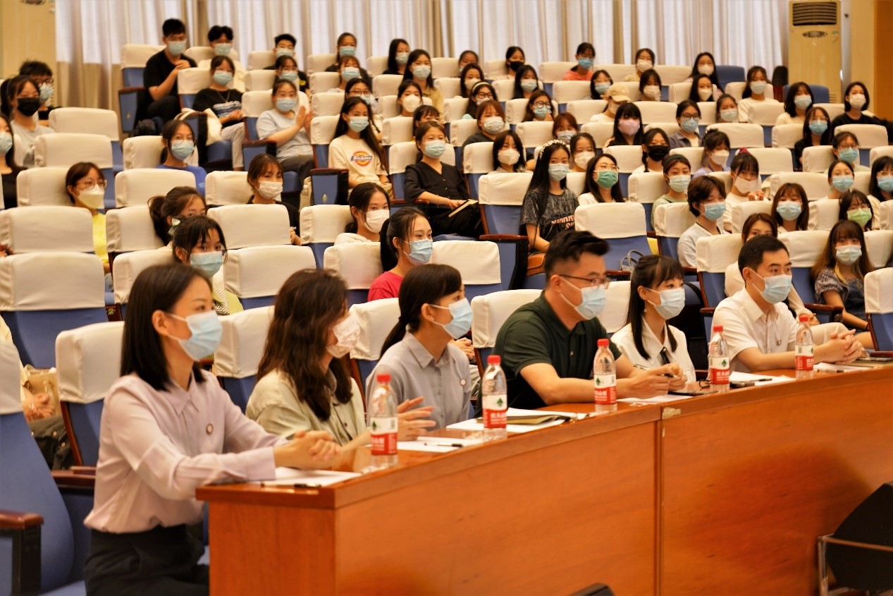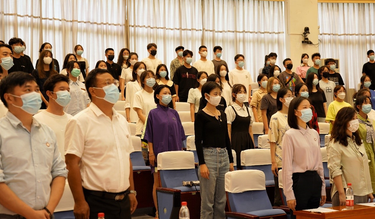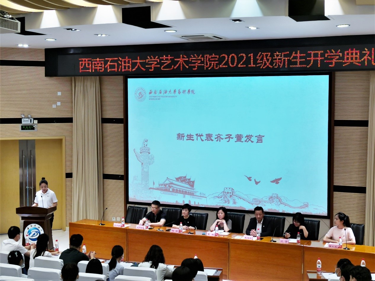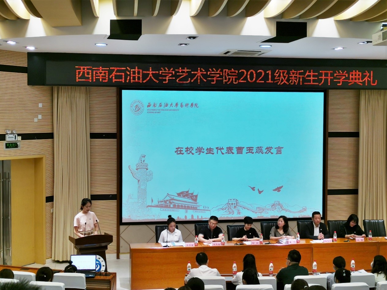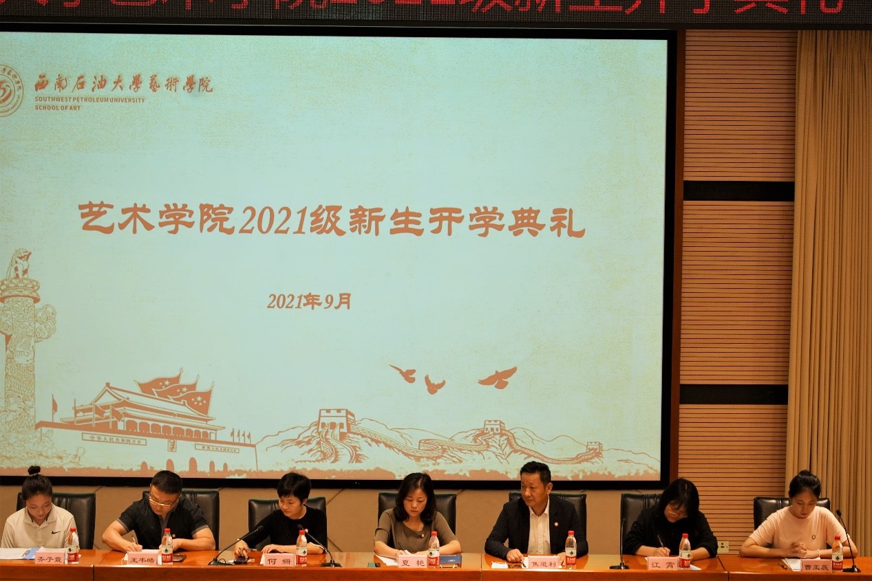 2021年9月6日上午10點,藝術學院在思學樓A114舉行2021級新生開學典禮,學院黨總支書記夏艷、院長焦道利、副院長江霄以及學院各科室主任、黨支部書記及2021級全體新生出席本次典禮,學院黨總支副書記何姍主持了本次典禮。