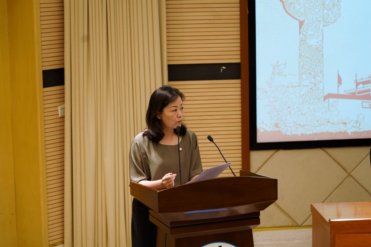 其次,在校學生代表曹玉蕊和新生代表齊子萱進行發言,她們分別從老生和新生的角度闡述了自己的大學體驗和對大學的期待。