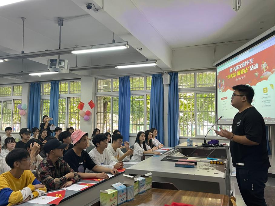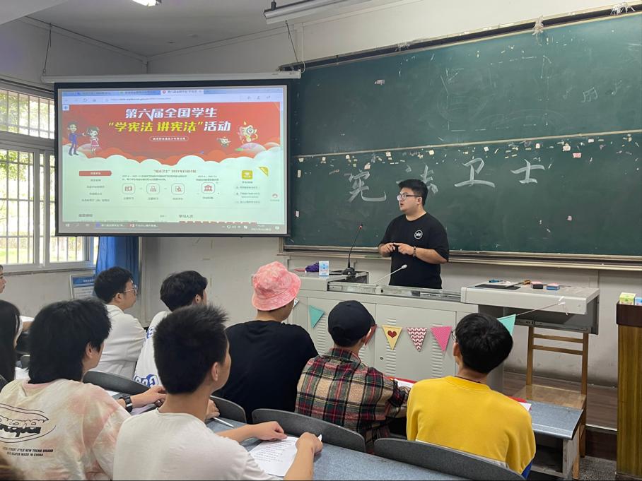 在本次2021年憲法衛(wèi)士行動(dòng)計(jì)劃中,為配合學(xué)校普及憲法知識(shí),姚盛聰老師分別從什么是憲法,為什么要遵守憲法,怎樣弘揚(yáng)憲法精神三個(gè)方面為同學(xué)們進(jìn)行了宣講,2019級(jí)全體同學(xué)在輔導(dǎo)員姚盛聰老師的帶領(lǐng)下,進(jìn)行了關(guān)于憲法的深層討論。姚盛聰老師說到,憲法,是個(gè)至高無上的名詞,憲法的根基在于人民發(fā)自內(nèi)心的擁護(hù),憲法的偉力在于人民真誠(chéng)的信仰。在對(duì)于憲法有了進(jìn)一步的了解后,同學(xué)們認(rèn)識(shí)到了憲法宣傳的必要性及憲法學(xué)習(xí)的重要性