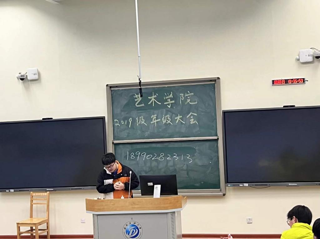 2019級輔導員姚盛聰老師在年級大會上引導同學們規劃未來的職業發展,針對19級有意向考研考公就業創業的同學提出了相應的建議。針對成績還有待提高的同學,姚老師鼓勵新學期要奮起直追,同時強調了一定要強化自身防疫意識。