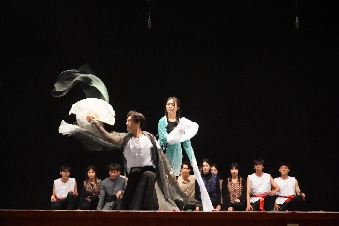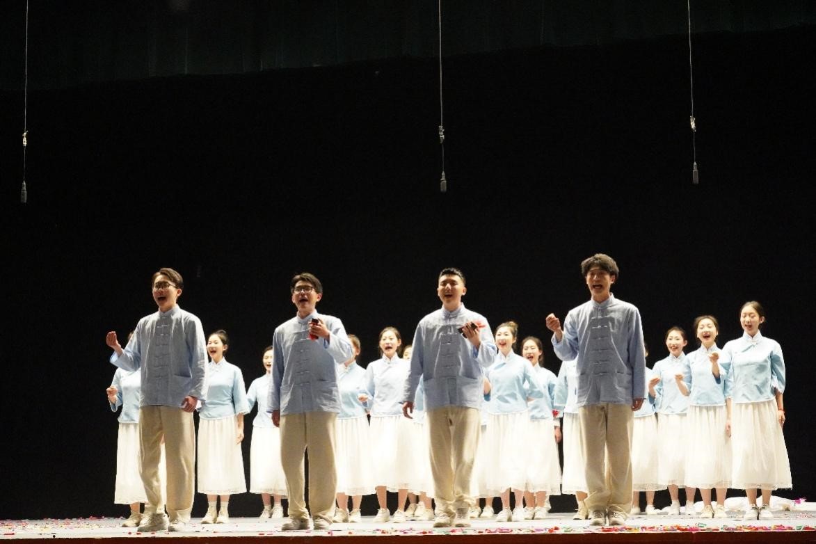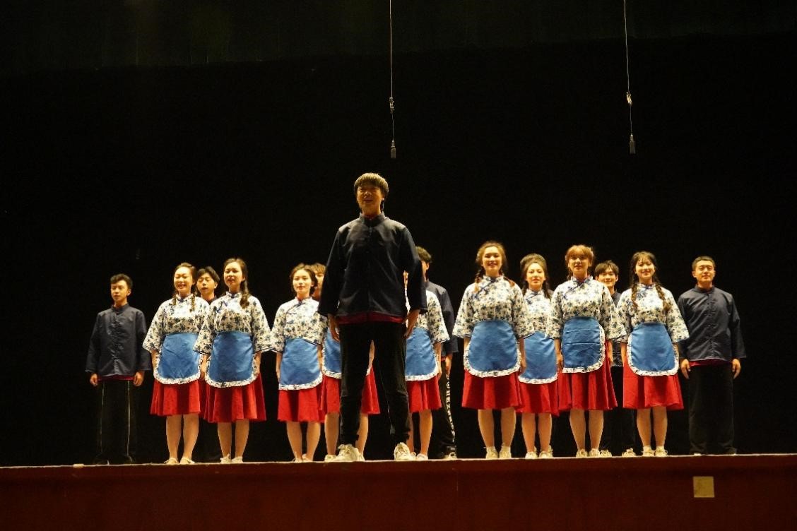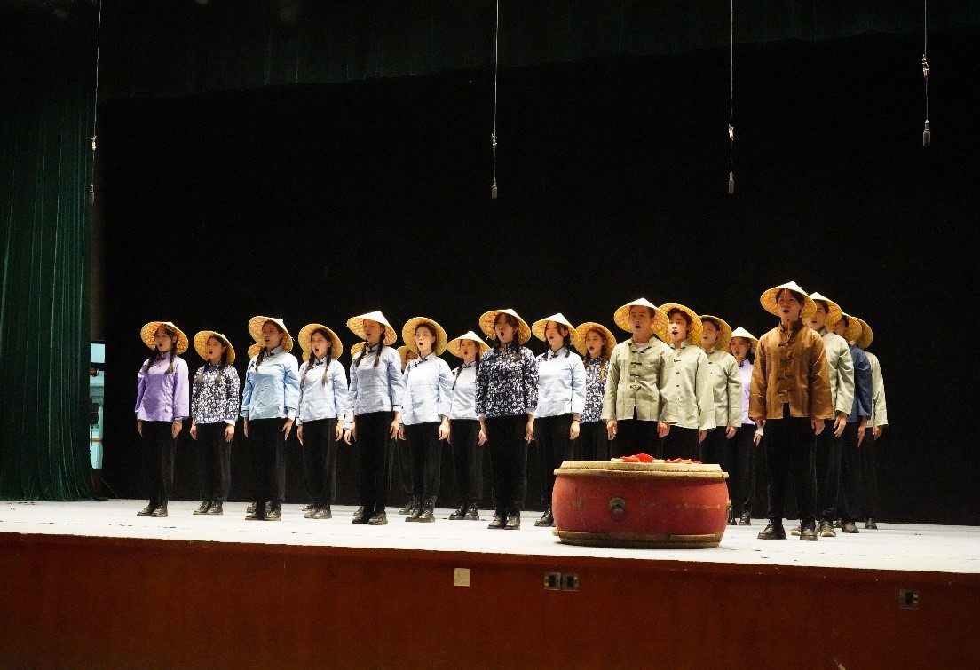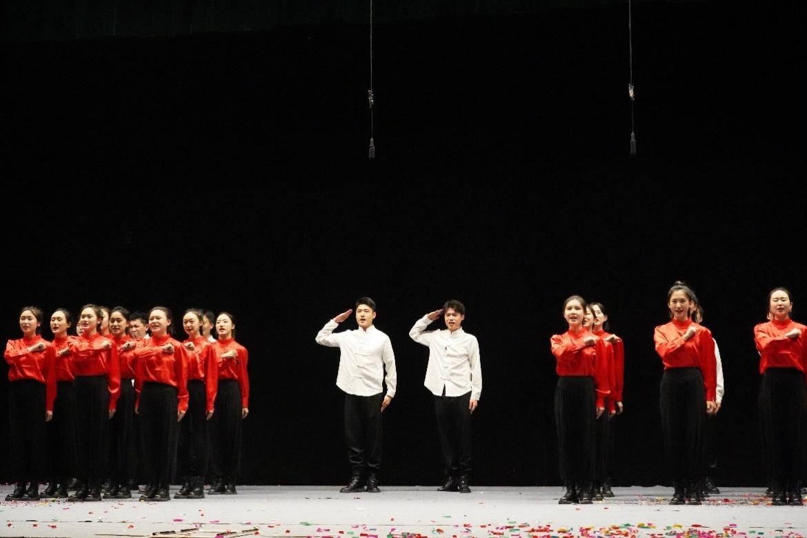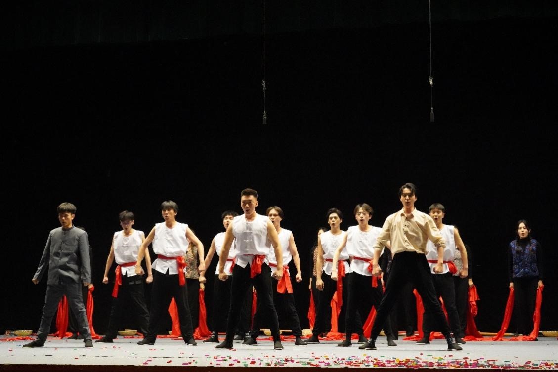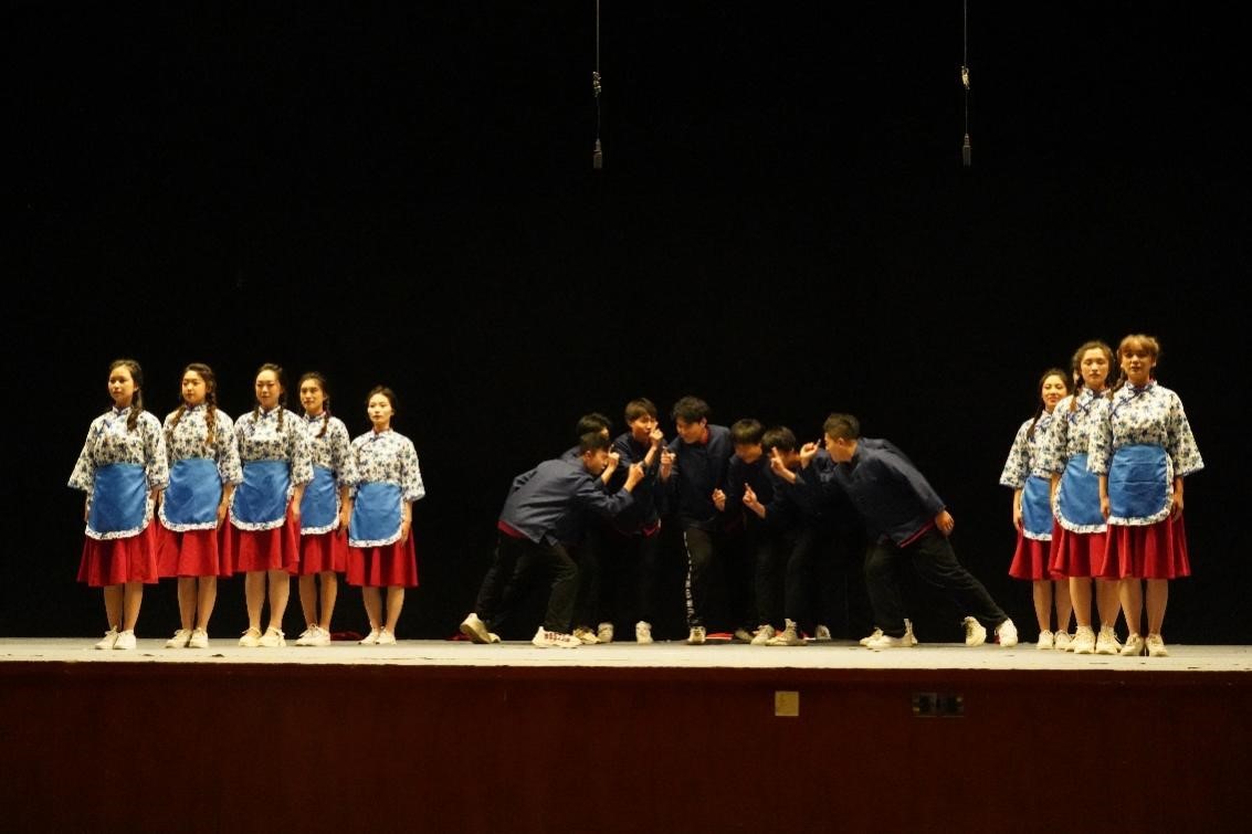 下一個登場的班級是表演一班,他們運用多種道具,用響鼓敲出時代的回響,帶大家回首老一輩的奮斗歷程,鄉村振興旺,還需民自強,我們要帶著老一輩人的努力與魄力,與時代同行。演出呈現出共產黨人在脫貧攻堅戰中不屈不撓、堅持不懈的精神,完美的表現和精彩的舞蹈表演贏得了現場觀眾的陣陣喝彩。