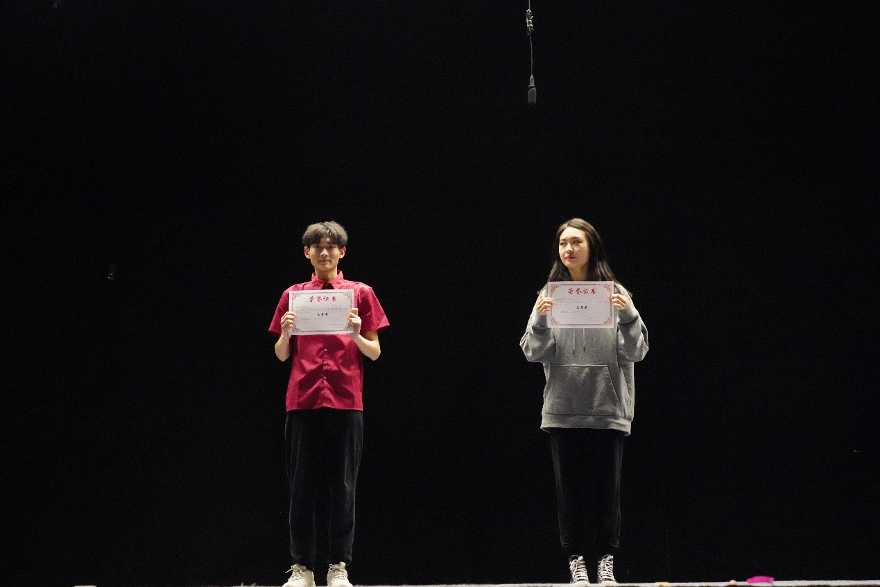 本屆繞口令大賽除了節目展示環節,還增設了點殺展示環節——評委老師將從每個班級中隨機抽選四名同學,進行課內理論知識提問和不同難度的繞口令抽查,更增加了比賽的趣味性。最終,經過評委老師們的專業打分,表演一班、表演二班獲得三等獎;播音一班、播音二班獲得二等獎;播音三班以9.47分的高分榮獲一等獎!