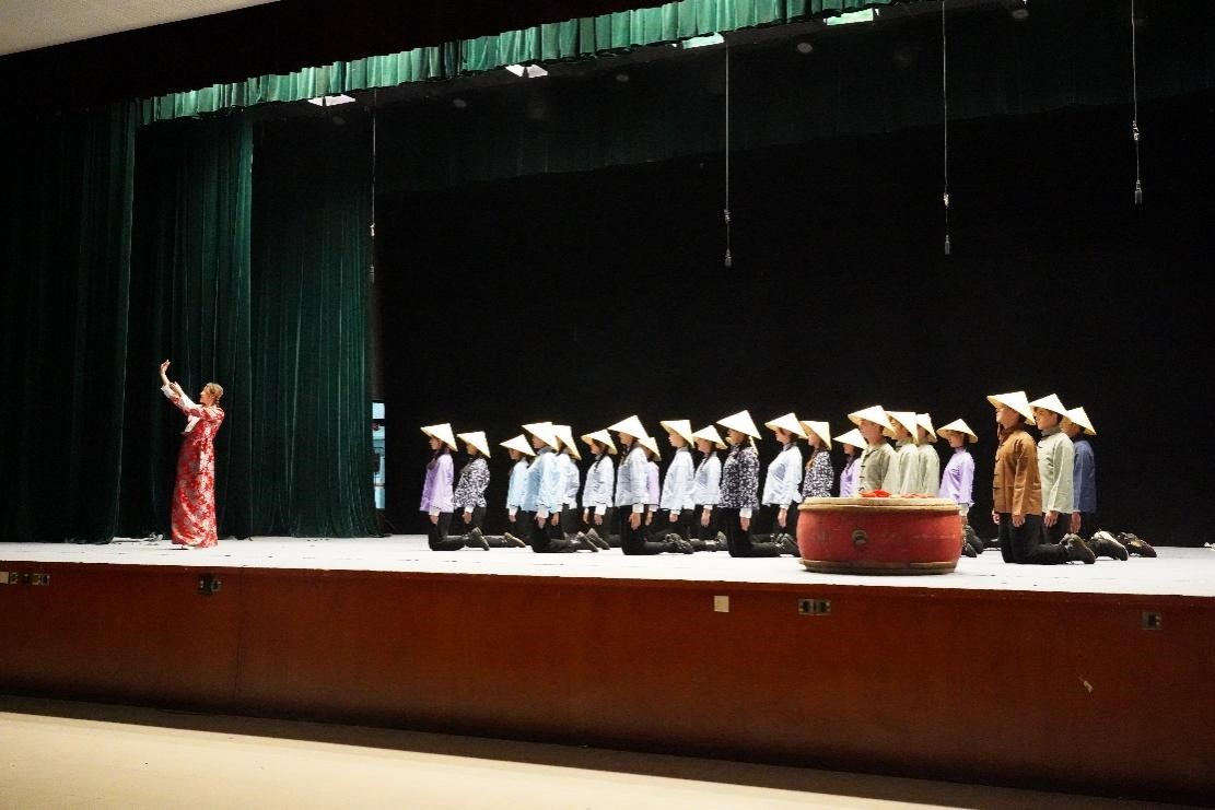 最后登場的班級是播音一班,他們深入明月村實地考察調研,搜集美麗鄉村古韻元素,融合現代舞美,挖掘鄉村振興深刻內涵,為我們演繹了“富裕必須齊奮斗,知名還需齊步走”的生動故事。流利的繞口令、飽滿的情感和同學們的完美配合,向觀眾們呈現了新時代鄉村振興新畫卷!