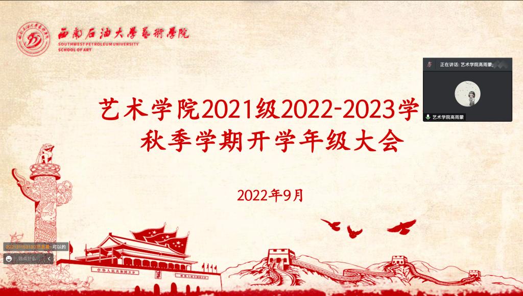 暑去秋來,天高氣爽,經(jīng)過整個(gè)暑假的調(diào)整,藝術(shù)學(xué)院的同學(xué)們又迎來了新的學(xué)期。盡管受到疫情影響延遲返校,但這并不能阻礙大家對(duì)于開學(xué)的喜悅和熱情。為幫助大家更好地適應(yīng)大學(xué)生活,開展新的學(xué)習(xí)計(jì)劃,進(jìn)一步做好學(xué)習(xí)網(wǎng)課的準(zhǔn)備,9月4日,各年級(jí)輔導(dǎo)員分別召開線上年級(jí)大會(huì),為大家講解本學(xué)期需要關(guān)注的重點(diǎn)內(nèi)容,幫助同學(xué)們?cè)趯W(xué)習(xí)生活等各個(gè)方面有所進(jìn)步。