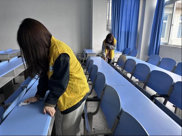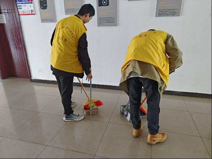 活動伊始,同學們熱情高漲,早早地到達場地報道。在相關部員的帶領下,大家排好隊,輪流領取勞動工具,到思學樓C401-C406、藝術大樓及大樓周圍綠化區、院士林附近馬路和綠化區開展志愿清掃活動。清掃采取了分組分區的方式,明確了各組所負責的區域,從而有效地提高了工作效率和質量。