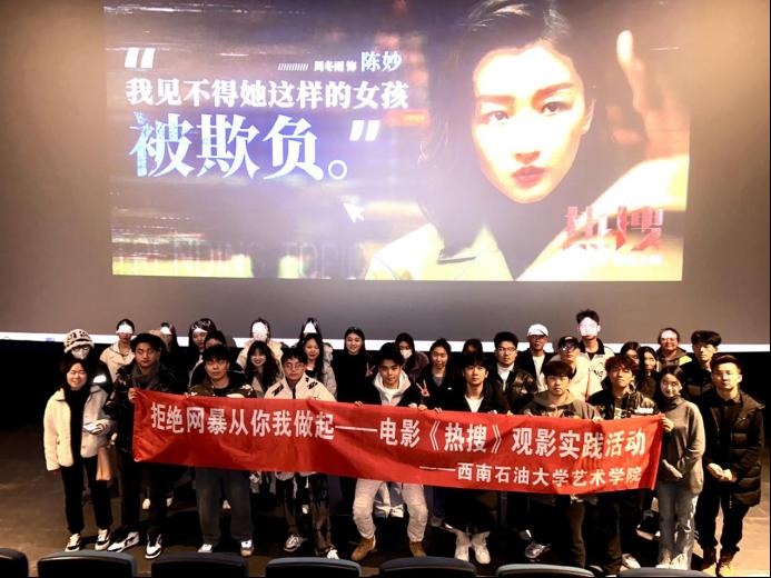 展現網絡力量,呼喚理性聲音。為進一步講好新時代網上“大思政課”,12月3日晚上,藝術學院開展以“拒絕網暴,從你我做起”為主題的電影《熱搜》觀影實踐活動,通過影片做好思想引領、價值涵養,激發網絡正能量。