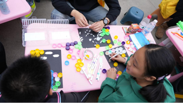 小柚子和小朋友們經過緊張有趣的隊伍選擇和隊旗制作后,組成了一支支各具特色的隊伍,進行環保猜猜猜、環保知識互動搶答、環保畫制作等一系列有趣的互動游戲,為接下來得植樹環節預熱。一起從綠色出行、垃圾分類等小事做起,做保護生態環境的有心人,做綠色低碳生活的踐行者。