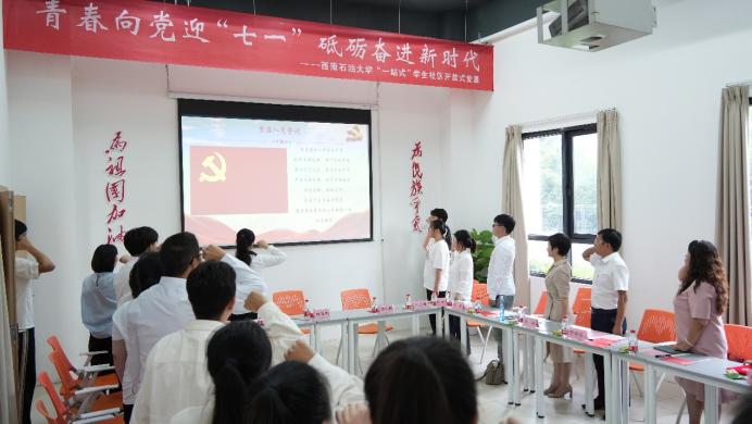 衡彤向鄭蓉、伍健頒發“西南石油大學生涯規劃與就業指導導師”聘書,表示要凝聚社會導師力量助力學生全面發展。全體黨員重溫入黨誓詞,永葆初心使命。地科院、法學院領導分別向學生黨員代表發放政治生日賀卡,紅色年輪見初心。