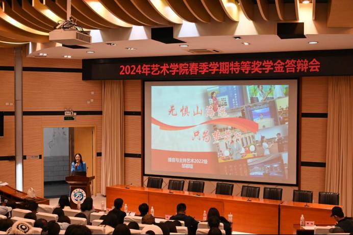 經過學生個人申請、年級初選、學院初審篩選,張鈺格、于士超、趙警煜、鄒穎瑄、付宇揚、馬郭璽、張露雙、馬東曉、謝靖瑋9位優秀答辯同學依次從思想淬煉、專業學習、社會實踐、科研立項、志愿服務等方面進行展示陳述,競相綻放風采,展現了優秀學子勤奮好學、全面發展的精神風貌。播音與主持藝術2021級于士超表示自己大學前三年的平均績點、綜測均排名年級第一,目前已直博至上海大學,始終相信所有的勝利都是有備而來。播音與主持藝術2022級鄒穎瑄的大學前兩年學分績點和綜合測評均位于專業第一,2024年春季學期綜測分數達96.22分,獲首屆職業規劃大賽國賽銅獎等獎項,發表學術論文,參與社會實踐,多方面鍛煉成長。廣播電視編導2023級謝靖瑋以目標為導向,懷揣夢想,不斷前行,取得四川省大學生外研社國才杯短視頻一等獎等多個獎項。