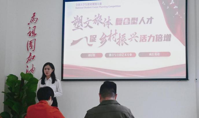 比賽時(shí),11位選手依次帶來精彩的職業(yè)規(guī)劃展示,結(jié)合自身職業(yè)價(jià)值觀,以未來職業(yè)目標(biāo)為引,綜合分析所學(xué)專業(yè)及就業(yè)前景,闡述個(gè)人職業(yè)規(guī)劃。廣播電視編導(dǎo)專業(yè)2023級(jí)田依靈以“編織光影夢(mèng)想,啟航編導(dǎo)未來”為題,綜合分析自身的性格特點(diǎn)與優(yōu)勢(shì),闡述自己的職業(yè)理想與奮斗目標(biāo)。播音主持藝術(shù)專業(yè)2023級(jí)劉妤熙表示自己將會(huì)為成為一名鄉(xiāng)村文旅復(fù)合型人才的夢(mèng)想持續(xù)付出努力,直到成就自身。廣播電視2023級(jí)研究生榮俊從小渴望成為一名鄉(xiāng)村文旅事業(yè)的傳播者,以職業(yè)理想為方向進(jìn)行探索,在助力鄉(xiāng)村振興的道路上收獲成長。