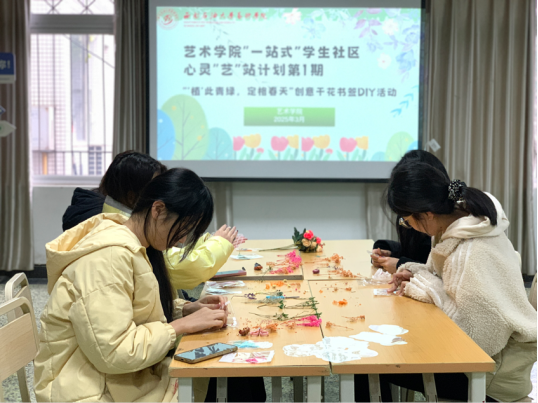 三月春意濃如酒,青綠鋪滿想象洲。3月11日上午10:00,在藝術學院一站式學生社區里,一場主題為“‘植’此青綠 定格春天”的DIY創意干花書簽活動在春日的勃勃生機中溫情啟幕,吸引了眾多同學踴躍參與,現場氛圍活力滿滿。