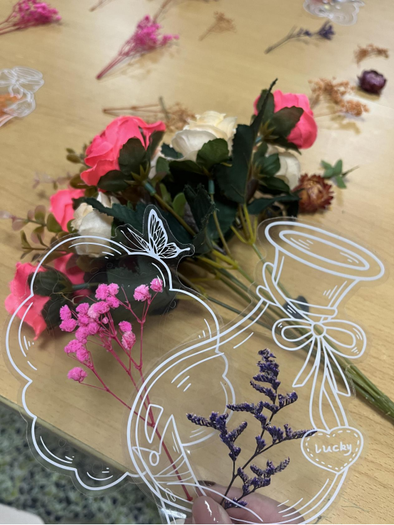 活動現場,五彩干花有序擺放,金黃的雛菊燦爛明媚、淡紫的薰衣草優雅迷人、粉嫩的滿天星浪漫清新,每一朵都形態各異,散發著植物獨有的淡香,空白干花貼貼書簽材料準備齊全,為同學們的創意提供了廣闊空間。