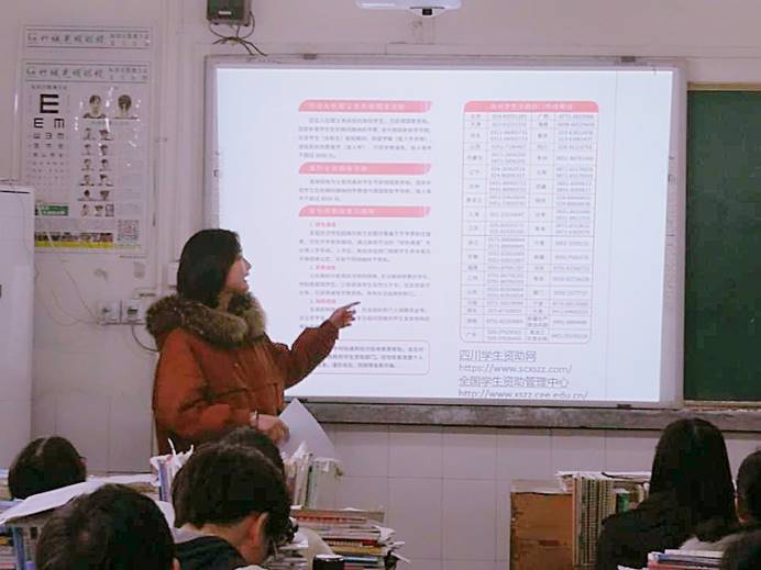 2018年2月24日,借著寒假的機會,西南石油大學藝術學院受助學生唐思佳、馮春霞、李曦,來到四川省大竹中學,對高三畢業班同學進行了國家資助政策內容的宣講。