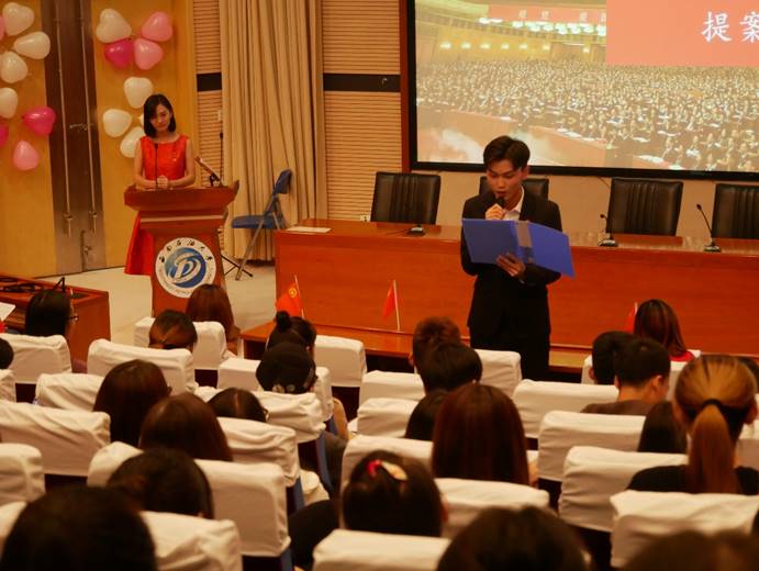 本次“小精華”團會圍繞十九大為中心主題,以模擬十九大中人大代表提出議案的生動形式貫穿全程,11個節目依次登臺,首先上場的是2017級播音與主持藝術專業第四支部的同學帶來的新聞播報,還有朗誦節目、繞口令表演、古典舞串燒、紅色影視劇配音秀等,一個個精彩的節目讓人目不暇接。